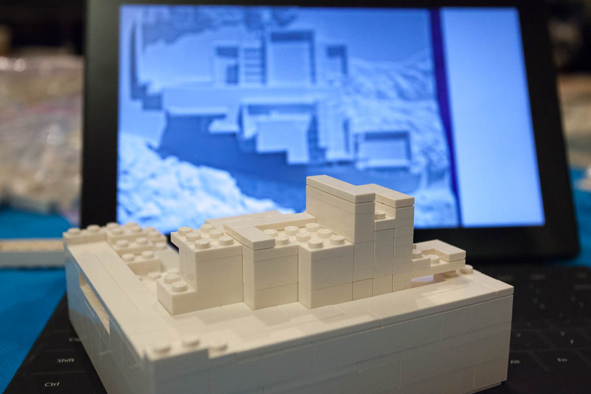 I chose to build a small scale model of Frank Lloyd Wright’s famous “Fallingwater”, even though it already has an official Lego set. (I haven’t built that model yet…) I remember finding the building extremely interesting when we visited it way back in August 14, 2000. (I also remember learning that the building is structurally flawed, and great efforts have been made to further reinforce the massively cantilevered structure.)